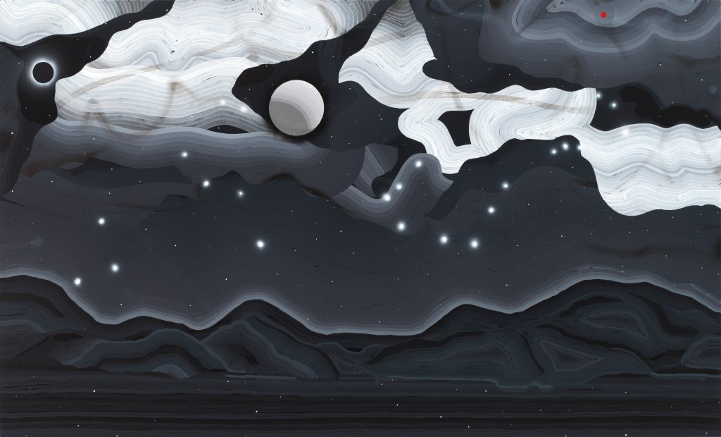 “12 Pangaes” acrylic on canvas, 36” x 72”, 2022